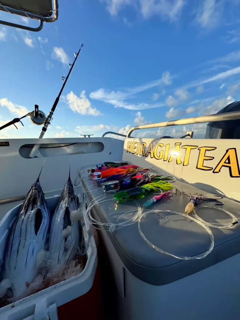 Sortie pêche au large ou dans le lagon, avec différentes techniques comme le jigging, le popper, ou selon vos préférences.